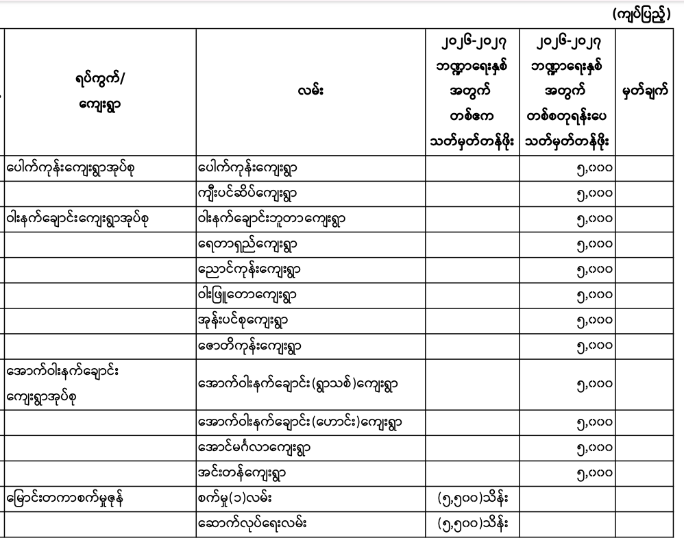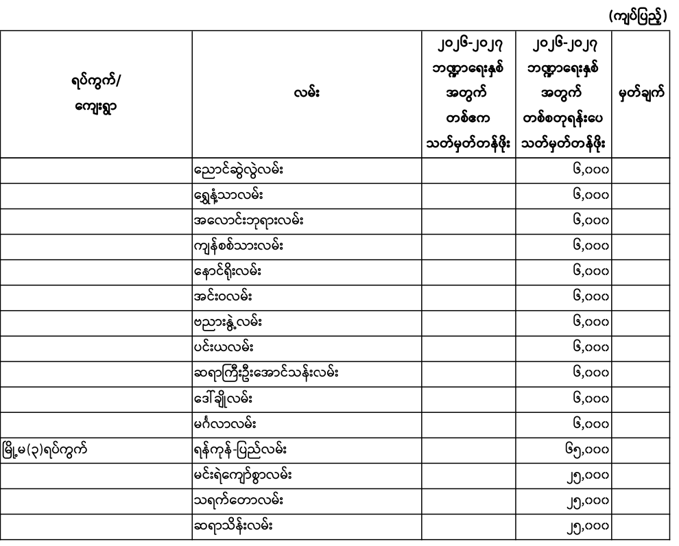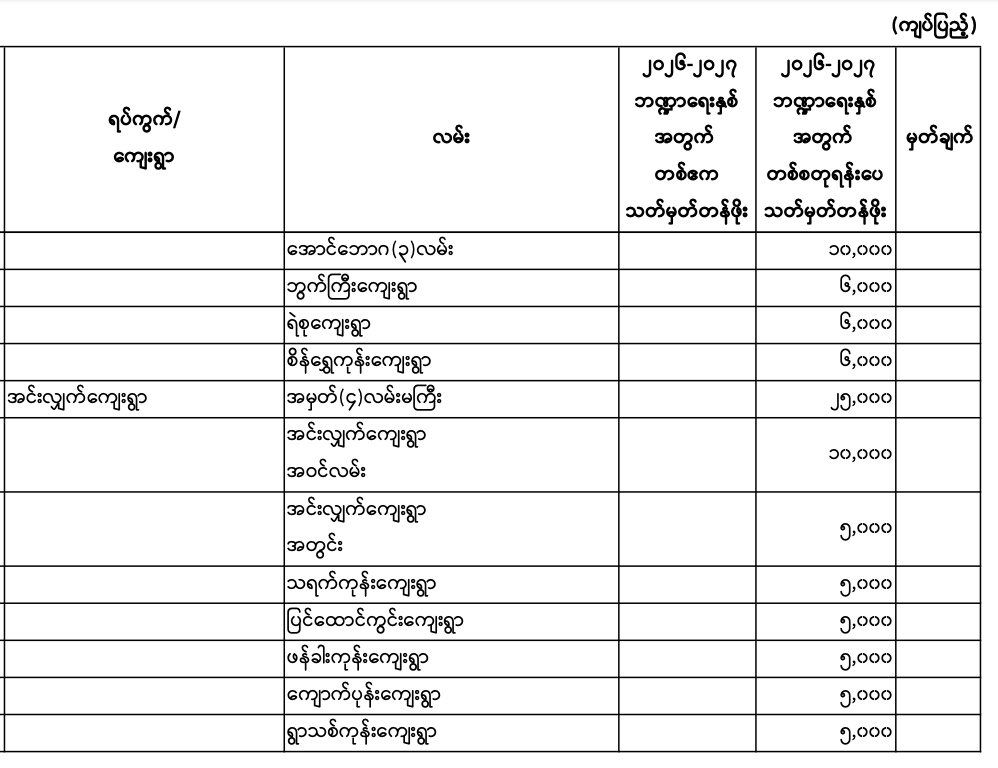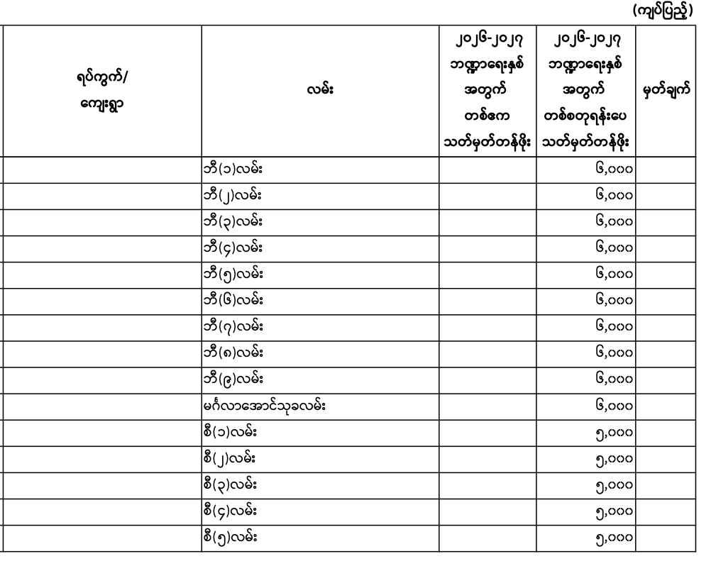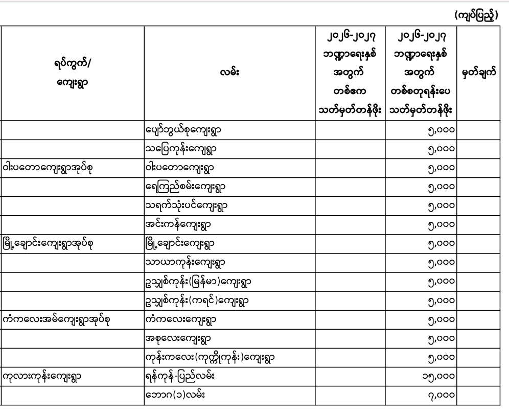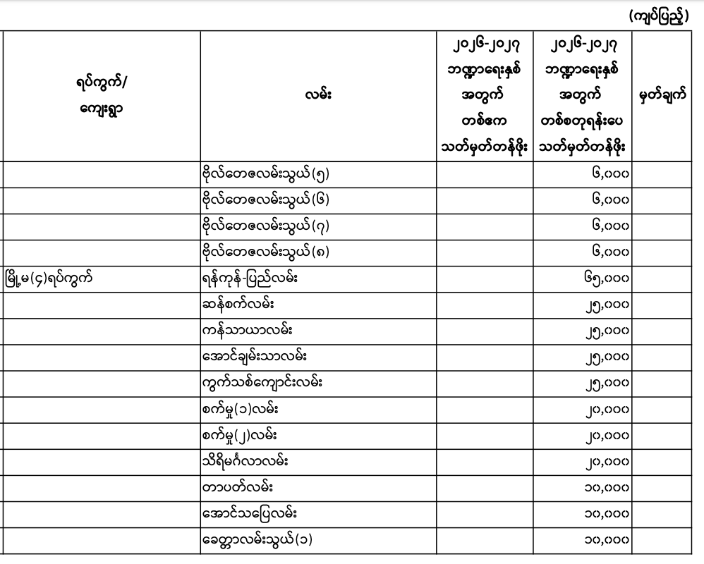 မှော်ဘီမြို.နယ်၏ ၂၀၂၆ - ၂၀၂၇ ဘဏ္ဍာရေးနှစ် မြေရောင်း/ဝယ်ခြင်း များအပေါ်အခွန်စည်းကြပ်ရန်နှုန်းထားများ