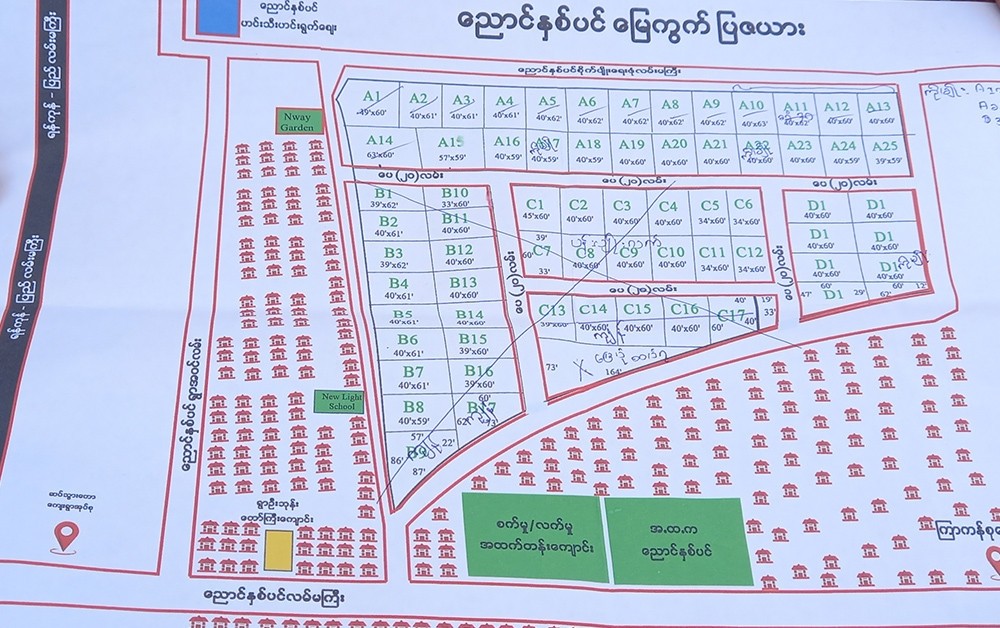 မှော်ဘီညောင်နှစ်ပင်လမ်းမကြီးအနီး ဈေးသင့်သောမြေကွက်များရောင်းမည်