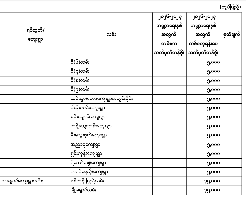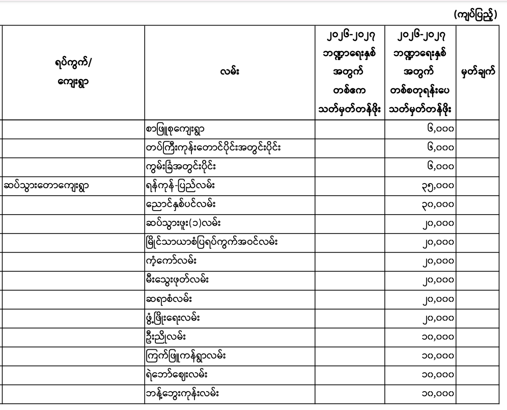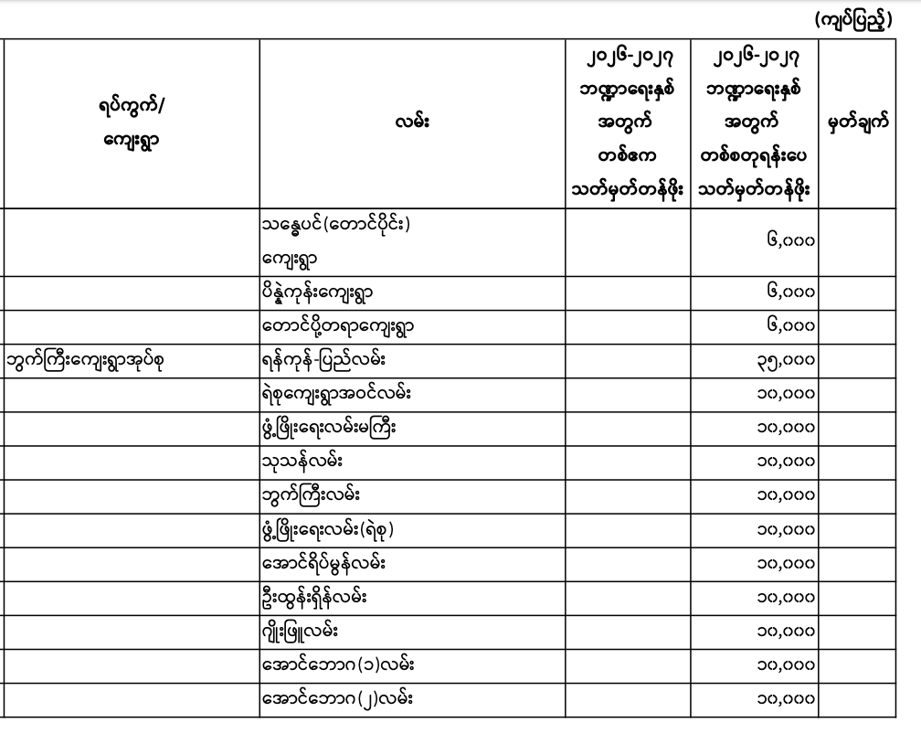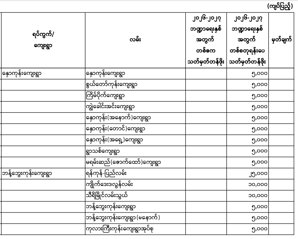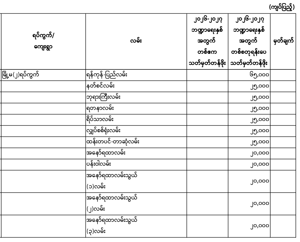 မှော်ဘီမြို.နယ်၏ ၂၀၂၆ - ၂၀၂၇ ဘဏ္ဍာရေးနှစ် မြေရောင်း/ဝယ်ခြင်း များအပေါ်အခွန်စည်းကြပ်ရန်နှုန်းထားများ