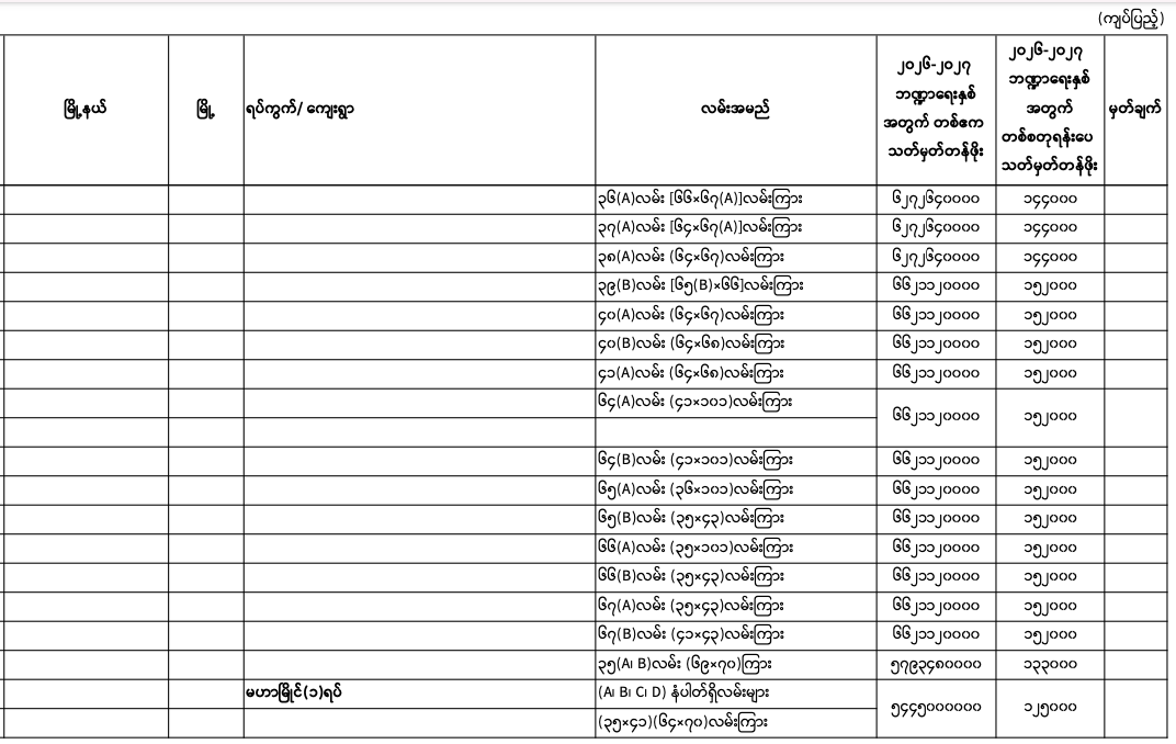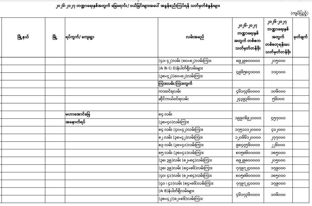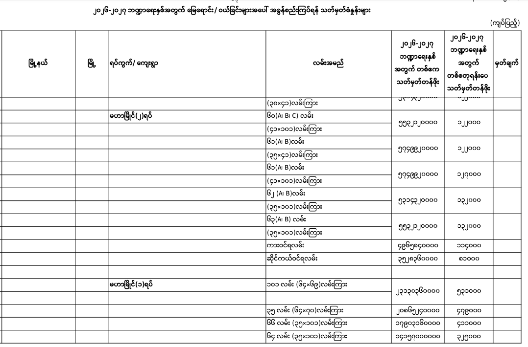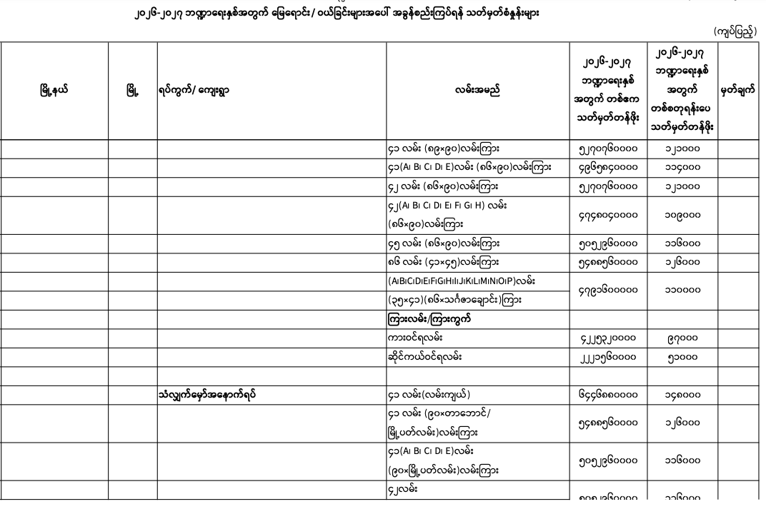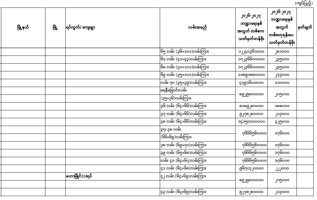 => မန္တလေးတိုင်းဒေသကြီး၊ မဟာအောင်မြေမြို.နယ်၏ ၂၀၂၅-၂၀၂၆ ဘဏ္ဍာရေးနှစ်အတွက် မြေရောင်း/ဝယ်ခြင်း များအပေါ်အခွန်စည်းကြပ်ရန်နှုန်းထားများ